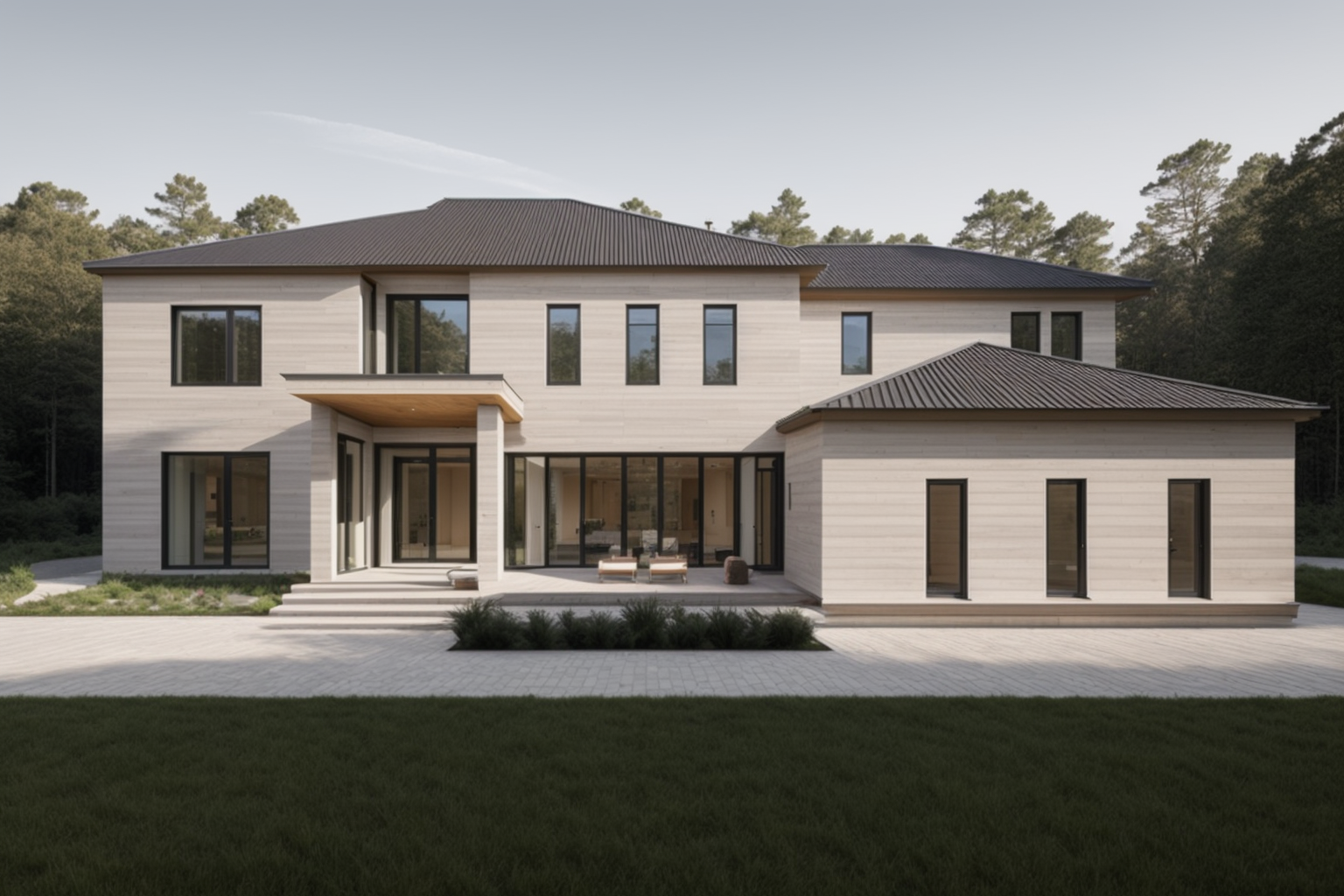 Building, designed by Santiago Calatrava, Neofuturist Architecture, in the afternoon, in the forest, Building, designed by Norman Foster, Post-Modern Architecture, in the morning, in New York, Villa