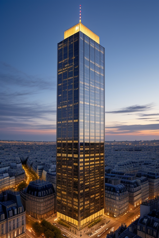 Skyscraper, designed by I.M. Pei, Scandinavian architecture, at night, in Paris
