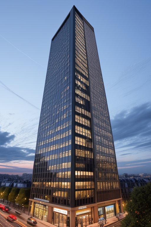 Skyscraper, designed by I.M. Pei, Scandinavian architecture, at night, in Paris