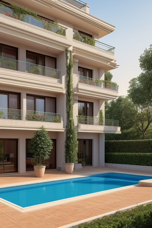 a nice villa on the planet jupiter with swimming pool and parking with 90 floor, Villa, designed by Philip Johnson, Art Nouveau Architecture, in the morning, on Mars