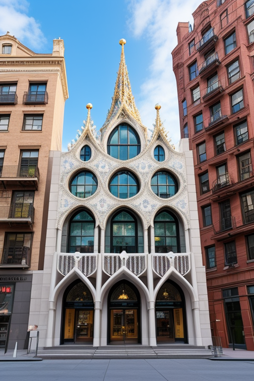 Un edificio de cristal, Museum, designed by Gaudi, Islamic architecture, in the afternoon, in New York