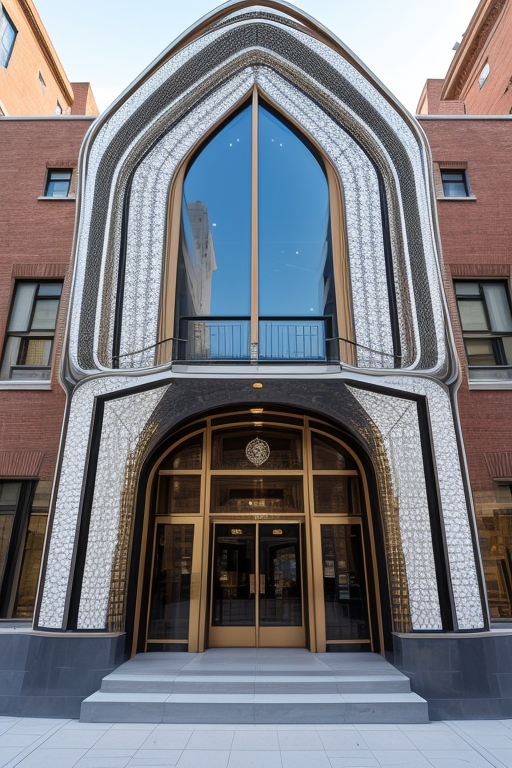 Un edificio de cristal, Museum, designed by Gaudi, Islamic architecture, in the afternoon, in New York
