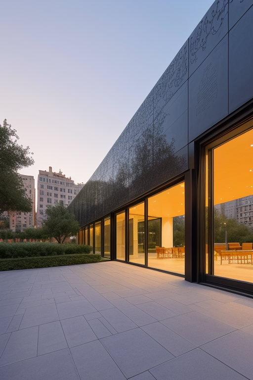 Un edificio de cristal, Museum, designed by Gaudi, Islamic architecture, in the afternoon, in New York, Mansion, designed by Mies Van der Rohe, Scandinavian architecture, at sunset, in Barcelona