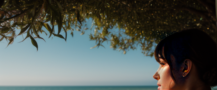 Over the shoulder, Morning Wide and beautiful sea and trees