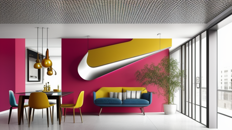 Dining Room, High-Tech style, sleek and futuristic, cold colours, minimalist and streamlined, metallic finishes, glass, mirrored surfaces, clean lines, state-of-the-art technology integration, open and functional spaces, a sense of innovation and modernity, Living Room, Retro style, nostalgic and playful, vibrant colours and patterns, geometric shapes, vintage furniture and accessories, bold and iconic designs from the mid-20th century, nostalgic references to specific eras