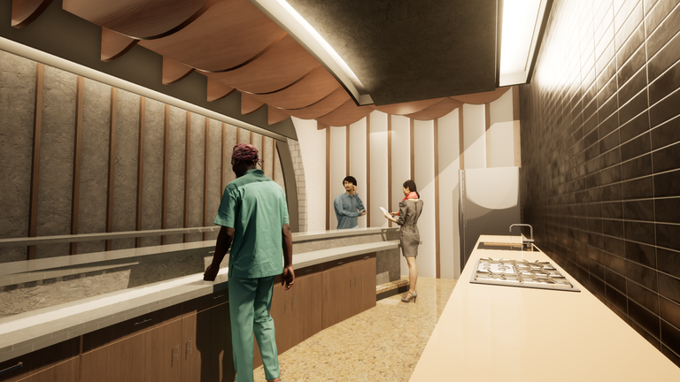 Dining Room, dining table with chairs, Japanese design, serene and minimalist, clean lines, natural materials, wood, stone, neutral colour palette, sliding doors shoji, tatami mats,  Zen garden elements, focus on simplicity and harmony, Kitchen