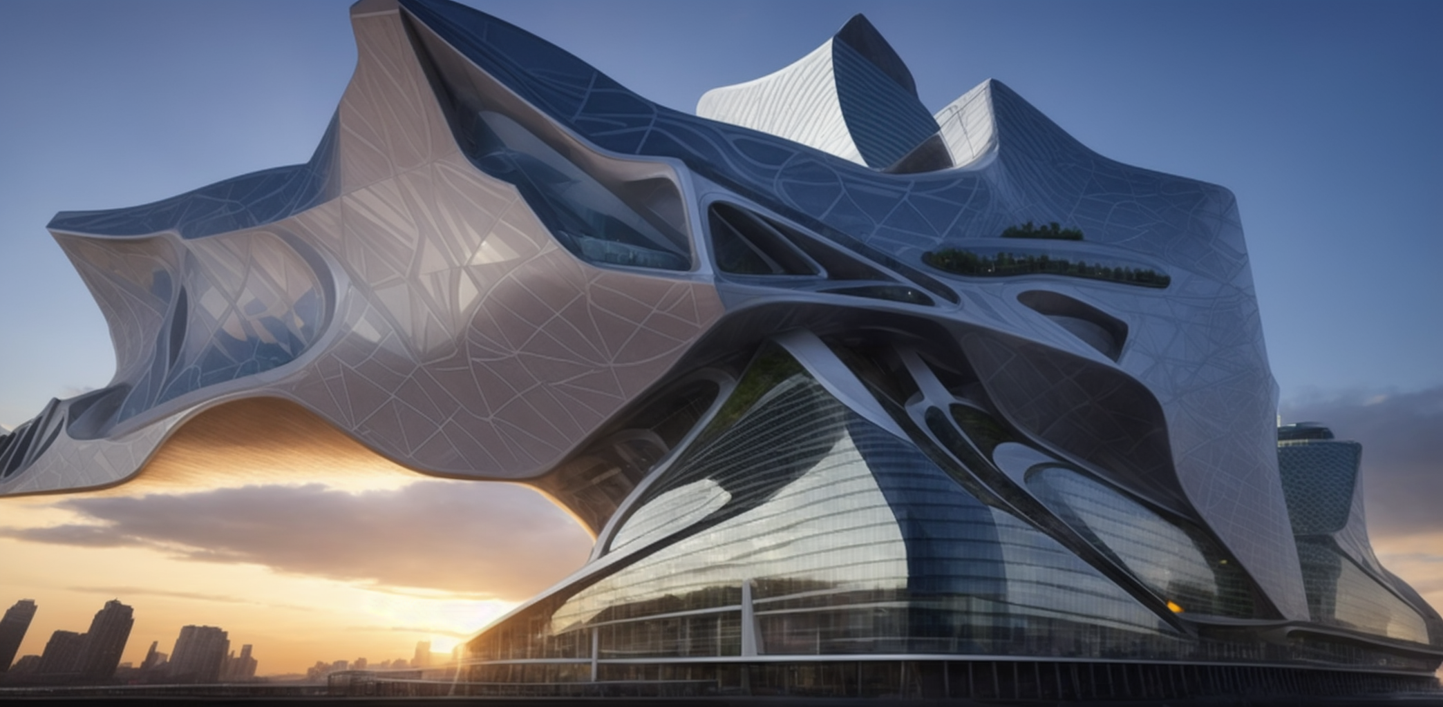 Skyscraper, designed by Zaha Hadid, Parametric Architecture, in the morning, in New York.