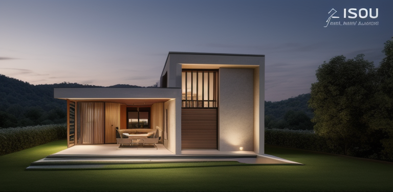 Villa, designed by Frank Lloyd Wright, Japandi architecture, in the morning