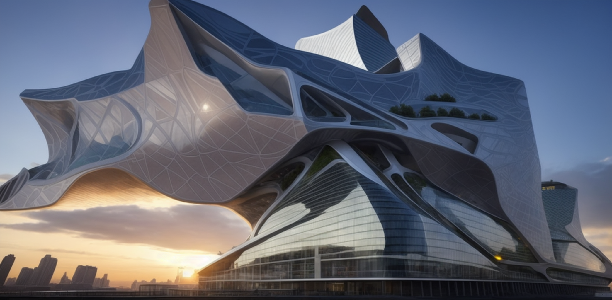 Skyscraper, designed by Zaha Hadid, Parametric Architecture, in the morning, in New York.
