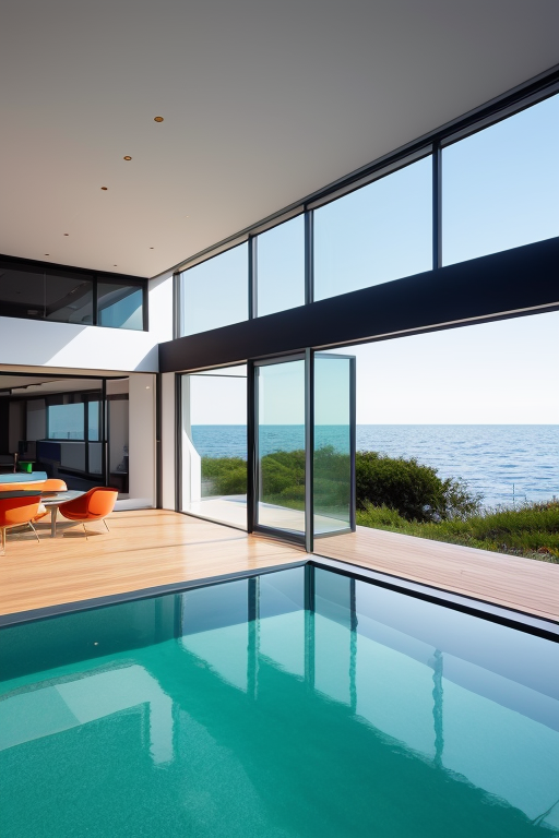 Villa, designed by Eero Saarinen, Modern Architecture, in the morning, in the ocean