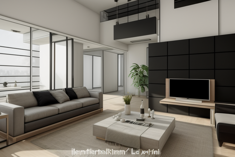 Living room, well arranged livable space, homy, couch, coffee table, armchairs, dining table with chairs, kitchen island, , Hollywood Glam design, glamorous and lavish, bold and luxurious colours, black, silver, mirrored surfaces, velvet and satin fabrics, dramatic atmosphere, indulgence, art-deco inspired