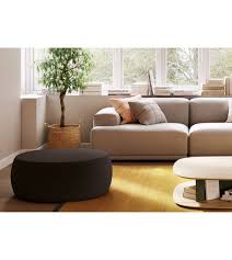For those looking to recreate this refined look in their own home, the key is to stick to a limited color palette and invest in a few high-quality, well-crafted pieces of furniture. Start with a clean, white base for your walls and kitchen finishes, then introduce wood elements to bring a touch of nature indoors. Furniture with clean lines and organic shapes are signature pieces that can be found in stores specializing in contemporary home furnishings — consider brands like West Elm or CB2 for tables and seating that echo the shapes seen here. A plush, comfortable sofa in a dark hue will not only serve as a practical centerpiece in your living space but also as the visual anchor, just as the black sofa does in this design. Maintain a clutter-free environment to preserve the sleek look, and let your carefully chosen furniture shine. With thoughtful selections and a restrained approach, you can channel the essence of this modern and inviting interior in your own abode.